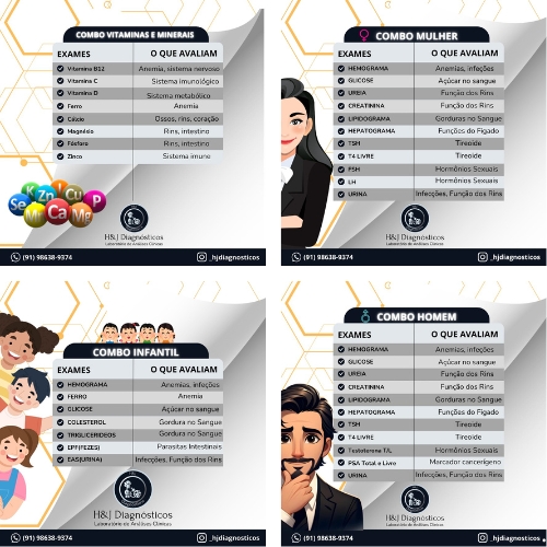 Buscando atender todos os públicos, desenvolvemos combos de exames para facilitar sua escolha na hora de realizar seu check-up. Aproveite e agende seus exames.